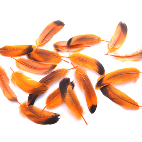 鴨目玉(オレンジ)15本 4-6cm 装飾用の羽根【フェザー アクセサリー パーツ 羽 手芸 アクセサリ しゅげい 羽根飾り】送料無料